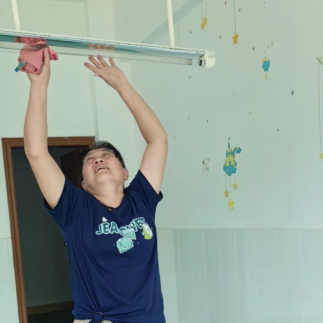 幼儿园,是孩子们梦想启航的温馨小窝。卫生消毒工作,就像忠诚的卫士,时刻守护着孩子们的健康防线,是幼儿园工作中重中之重的关键环节。随着开学的钟声即将敲响,为了让孩子们能在一个干净、舒适、安全的环境里开启新的学习生活篇章,幼儿园的教职工们迅速行动起来,对全园环境展开了一场全面而深入的大扫除行动。