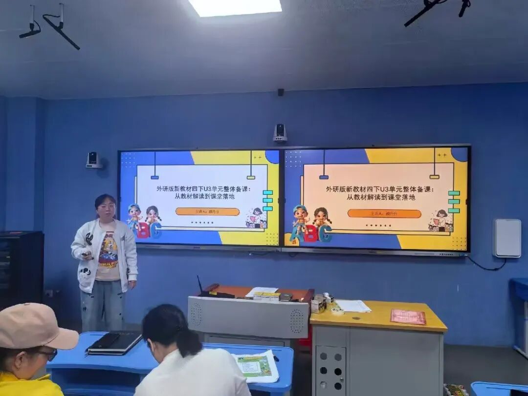 为深入贯彻《义务教育英语课程标准(2022年版)》理念,准确把握外研版四年级英语新教材的编写要求与核心导向,提升大单元整体教学设计与实施能力,2026年1月18日上午,铺前中心小学英语组开展了一场题为“聚焦新教材,精研大单元”的四年级英语整体备课校本研修活动。活动由张小芬组长主持,全镇英语教师齐聚五楼同步课堂教室,共赴一场融合教育理念、教学实践与集体智慧的专业研习。