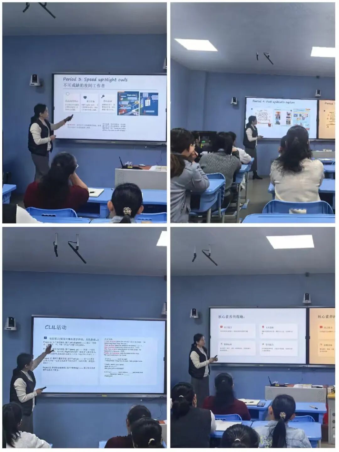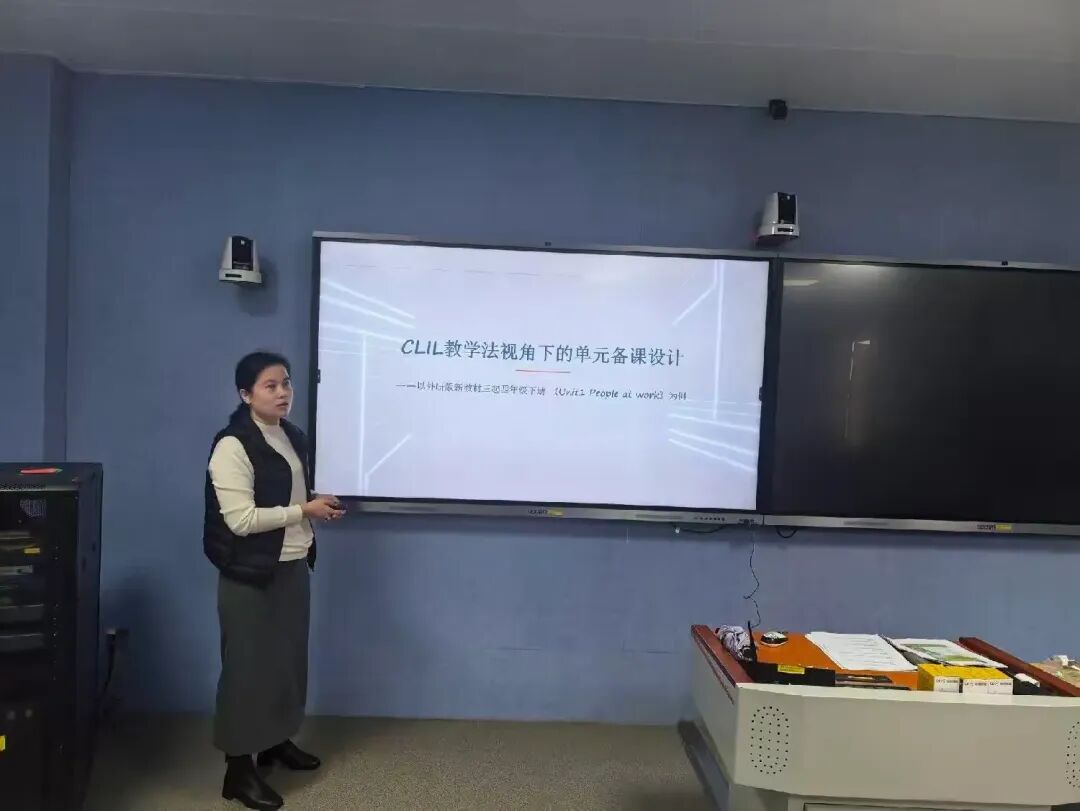 钱海霞老师以《Unit 1 People at work》为例,引入CLIL(内容与语言整合学习)教学法,为单元备课开辟了新思路。她将“职业”主题转化为一次跨学科的“社会探究”,通过“4C框架”(内容、沟通、认知、文化)实现语言学习与学科知识、思维训练、文化理解的自然融合。