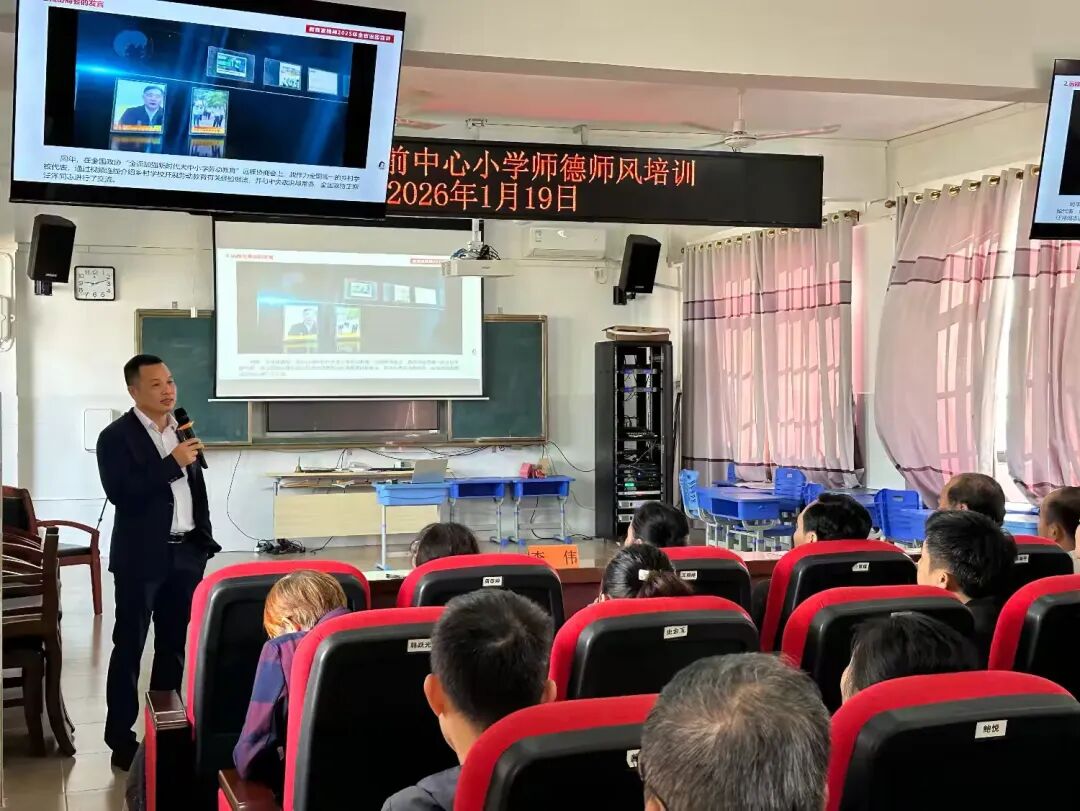 1月17日上午,文昌市铺前中心小学2026年寒假教师培训正式拉开帷幕,首日聚焦“班主任能力提升”与“教师专业成长”,为全体教职员工带来一场干货满满的学习盛宴。